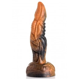 Fantasy Dildo: This scaled, demon dick comes from the depths of the desert. The fine detail of the base and shaft add realism to the fantasy. Enjoy every ridge, curve, bump and fold of this tentacle-like dragon cock. Each dildo is a unique marbled red, brown and orange color. Put a costume together or use your imagination and play out your favorite fantasy scene!