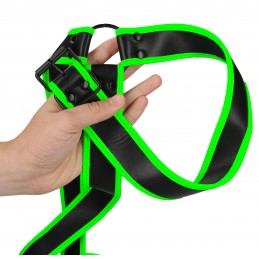 Created to fit all bodies and gender identities. Padded for extra comfort. YOUR GUIDE TO THE THIGH RIDER 1. Take a seat and open the velcro. 2. Hold the harness where you would like it on your thight - do not strap it up yet. 3. Slide a dildo in