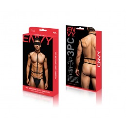 Earn your grade with this deliciously naughty 2 PC bondage harness teddy set by Leg Avenue. Made from vegan leather, the O-ring studded crotchless lingerie teddy features adjustable straps for the perfect fit and a rip-away plaid skirt. Wear with