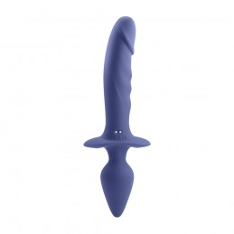 This double-motor toy features two vibrating shapes - a beaded plug and a mini vibe - each tethered by a flexible cord. The rounded-tip plug consists of 3 bulbs that gradually increase in size to a wide safery base. The chunky-shaped mini-vibe narr