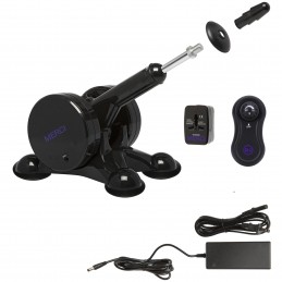 • Handheld Controller Powers On/Off and Adjusts Speed • Adjustable Arm for Precise Positioning • Intense Multi-Speed Strokes • Stroke Length: 2.36" (6 cm) • Up to 195 Strokes per Minute • Includes Universal Power Adapter for International Use • Use with Any Vac-U-Lock Compatible Attachment • Adjustable/Removable Handle • Four Sturdy Suction Cups Keep Machine in Place • AC 100-240V, 50-60HZ Universal Power Supply with US Power Cord