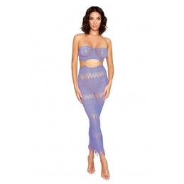 Floral crochet lace and fishnet suspender bodystocking. (Thong not included) • Material: 90% nylon, 10% spandex • One size fits most 90-160 lbs • Boxed item