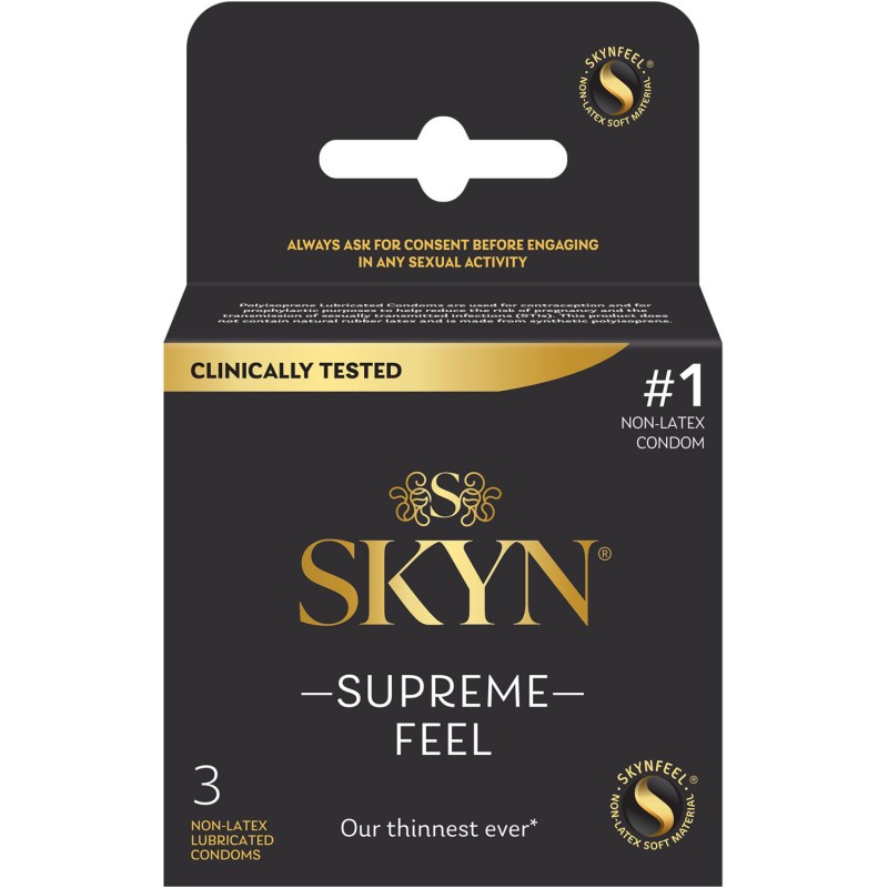 SKYN Elite Thin Lubricated Condoms are made with SKYNFEEL material, a non-latex material that feels soft and natural. 15% thinner than our SKYN Original condoms, these condoms provide ultimate sensitivity. They are also ultra-soft and easily stre