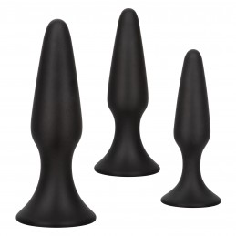 To enjoy everything the exhilarating world of anal play has to offer, training is in order to ensure total safety and satisfaction. The tapered silicone plugs allow you to gently increase the size of your pleasure as you tease and train. While each increase of your training expands your horizons, use the convenient suction cup base for hands-free stimulation, effortless insertion and gentle removal.