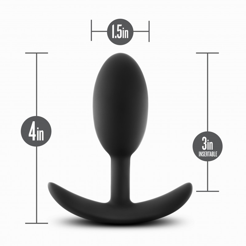 The Vibra Slim Plug's inner weight rolls with your movement to stimulate muscles and add sensation! The Ultrasilk ™ Silicone, with it's silky smooth feel, warms with your body heat beautifully. Your motions propel a ball bearing inside this smooth silicone with a comfortable anchor base plug perfect for adding new sensations. This plug has a 3.5 inch length (2.75 insertable inches) and a 1 inch width for the perfect size during play. Made with smooth, body-safe silicone, this plug contains no phthalates, paraffins or latex.