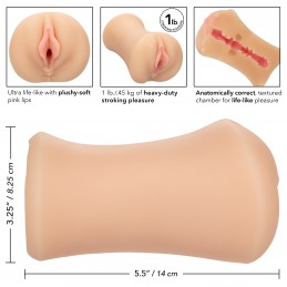 Heavy-duty life-like masturbator Dual-density for a comfortable grip and ultra-tight sensations Ribbed, textured chamber for authentic look and feel