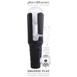Put the squeeze on your play time with the powerful stroker that not only sucks and vibrates – but also lets you squeeze whenever you want with ergonomic squeeze grips! The seven-speed suction and vibration feel so good, especially with the super-soft and stretchy sleeve that’s made from powdered TPE to slip and slide with ease. Let your fantasies run wild as this toy comes with an erotic Riley Reid audio for inspiration - with earbuds so you can hear her up close and personal! You’ll also get a free movie download for a sensational visual experience! The case comes apart for easy cleaning, including an evacuation tube to make sure it’s ready for your next squeeze play!