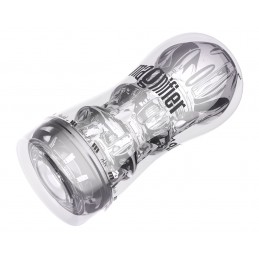 Self-contained rechargeable masturbator with powerful vibrating action. Squeeze to control the pressure. 10 functions of vibration, pulsation and escalation. Removable, ultra-tight, and textured sleeve is close-ended for superior suction. Air rele