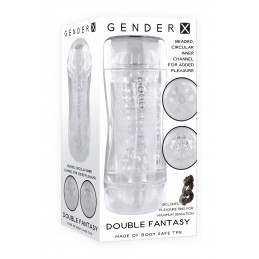 Pump your passions into this Double Shot stroker! It has a mouth and vulva for your pleasure that allow your fantasies to run wild with hundreds of scenarios. The tight, textured tunnel in the center has ridges, nubes and is stretchy and realistic