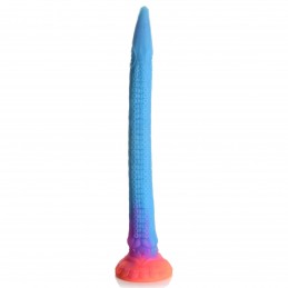 This may be the most beautiful anal hose you've ever seen! This 16" (40.64 cm) long dildo is perfect for snaking your drain, and this time it looks like a mystical sea snake! With a base that is sunburst colors of yellow and orange and a body that is shades of purple and blue, it also has fine, detailed designs along the body and glitter embedded in it, too! From the flower petal base to the scaled and sucker-covered body to the sea snake head that has gills, eyes and a mouth, this is a gorgeous toy you'll be proud to show off or privately enjoy! Made out of premium, phthalate-free silicone, it has a firm core and is flexible and smooth. When exposed to UV light or sunshine, it also glows in the dark! Use the wide, suction-cup base to keep it in place and use it hands-free, or combine it with a compatible strapon harness for kinky cosplay, fantasy roleplay, or hot pegging play!
