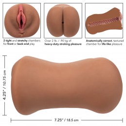 Complete travel sized masturbator with 2 ends. Dual density for the ultimate stroking action. Life-like look and feel. Heavy-duty one piece masturbator with ribbed suction chambers. Unique design for maximum grip.