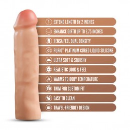 • Boost Performance By 2" (5.08cm) In Length, 1.5" (3.81cm) In Girth • Sensa Feel Dual Density Silicone Technology • Purio Liquid Silicone Outer Layer, 100% Body-Safe • Ultra Soft & Squishy. Realistic Look & Feel • 8.5" (21.59cm) Length (6.75" (17.15cm) Insertable) x 2" (5.08cm) Thick