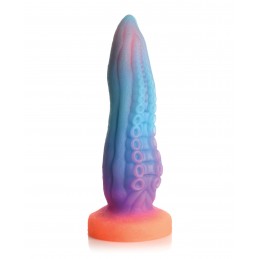 It reaches for you, and every sucker tastes your skin… This thick tentacle has two rows of gradually bigger suckers as you get towards the base. Along each side are thick, calloused ridges that softly and sensually rub against you as you ride it. The tapered tip makes insertion a bit easier as you take on this girthy octopus arm! Its hues of blue, purple and orange glow bright green in the night when exposed to UV light! Made out of premium, flexible, phthalate free silicone, this dong is body-safe and best used with water-based lubricants. Enjoy hands free rides due to the strong suction cup base! Invite a partner to indulge in kinky cosplay or fantasy roleplay and use their favorite harness to transform this dong into a strapon!