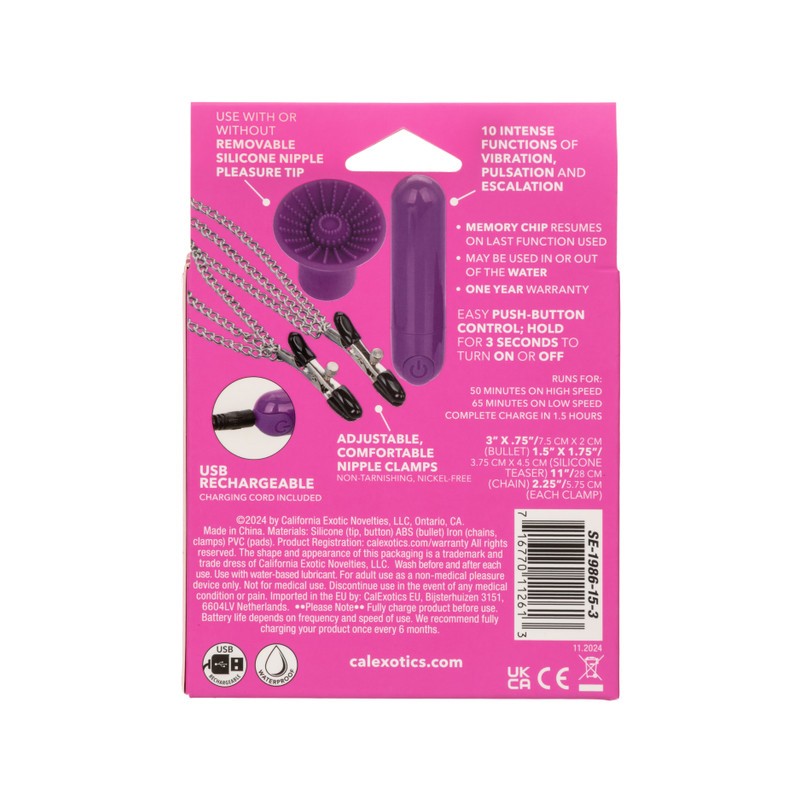 Everybody loves a little nip! Chained Up nipple clamps are connected by an iron chain. The strength and size of the clamp adjusts so they can provide a soft squeeze or an intense grip. Ideal for solo or partner play, they'll keep your nips titill
