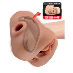 The Stroke It collection brings you the Juicy Pussy stroking sleeve, made to thrill with every squeezing stroke. Dive deep into over 1.5 lbs. of heavy-duty stroking pleasure with plushy soft pink lips, closed end design, and anatomically correct c