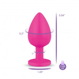 Large, Hot Pink silicone, teardrop shaped anal plug with sparkling Deep Purple colored, round acrylic gemstone. Body safe, premium silicone, anal jewelry. Easy to clean and dishwasher safe butt plugs. Available in various colors and sizes.
