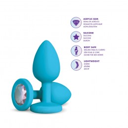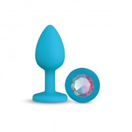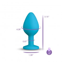 Medium, Teal silicone, teardrop shaped anal plug with sparkling Clear Iridescent colored, round acrylic gemstone. Body safe, premium silicone, anal jewelry. Easy to clean and dishwasher safe butt plugs. Available in various colors and sizes.