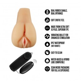 The M for Men Storm is loaded with fun! This ribbed masturbator cup has an array of pleasurable textures inside that massage and tease. Cycle through 7 powerful vibration functions and a one-touch suction that tightens and releases around you for op