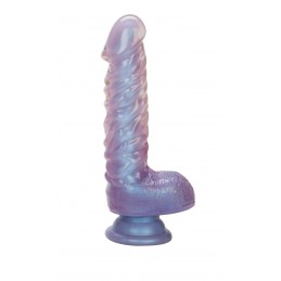 Measuring 11.5 inches of insertable length with a thick body and big realistic head. The life like shape with a slight natural curve and thick raised veins for stimulation. Flexible purple rubber jelly gives you lots of work with in terms of position