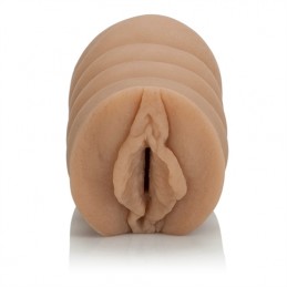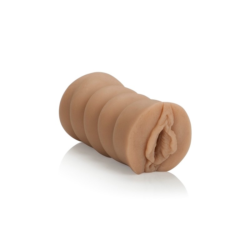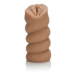Soft tight and stretchy stroker with removable vibrating bullet. 10 functions of vibration pulsation and escalation. Push button controller with LED indicator and plug-in jack. Hold button for 3 seconds to turn off. Pleasure chamber with over 120 wel