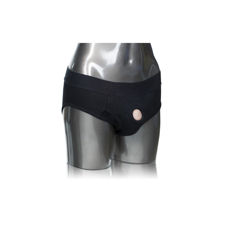 Indulge in your strap on fantasies with this fully adjustable and comfortable dildo harness from Strap U. With a wide band supportive harness that adjusts via two Velcro straps, you can insert your favorite flared base dildo into the O ring. Just sna