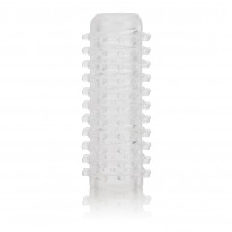 AMP UP your size and girth with this doubled up erection enhancer! Made of TPR material, so it is stretchy enough to fit over most cocks. Simply slide your rod into the sheath and fit the attached ring behind the testicles. Once in place, this durabl