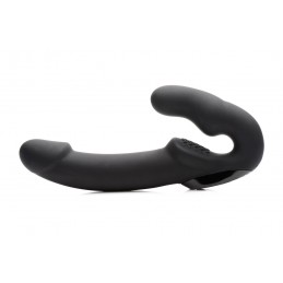 The first strapless strap-on with a remote control in the world, this couples toy provides more convenient vibrating pleasure during pegging or penetration that does not involve a penis. The shape allows one partner to insert the smaller end vaginal
