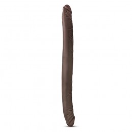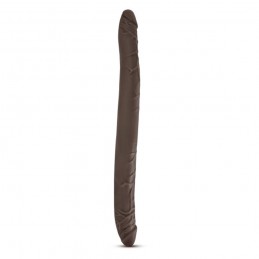 Double dong with veins. Black in color and 18 inches in length. Latex free, polymelt rubber. Get a double dose of fun for yourself or with a partner.