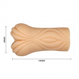 Realistic, hand-painted detail with inner ribbing and nubs for added pleasure. Soft and stretchy with hand-painted lips for a real life look and feel. Compact design with non-slip comfort grip. Open-ended design makes clean up a breeze. Use only with