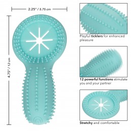 • 12 intense functions of vibration, pulsation and escalation • Stretchy and comfortable support • Added ticklers for enhanced pleasure • Vibration resonates throughout to maximize lovemaking • Sized for comfort and intensity • Easy push-button control, hold for 3 seconds to turn on or off • Body-safe silicone • May be used in or out of the water • Memory chip resumes on last function used • USB rechargeable self-sealing port with charging cord included