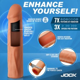 Upgrade your bedroom experience with the Realistic, Vibrating Penis Extension Sleeve. Its authentic appearance features a pinkish mushroom head and a robust, vein-covered shaft. Gain an additional 1.5 inches in length and 0.6 inches in girth to enha