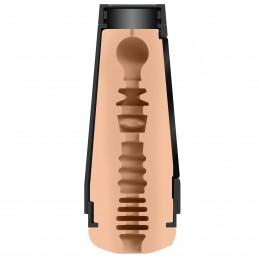 Pump your passions into this Double Shot stroker! It has a mouth and vulva for your pleasure that allow your fantasies to run wild with hundreds of scenarios. The tight, textured tunnel in the center has ridges, nubes and is stretchy and realistic