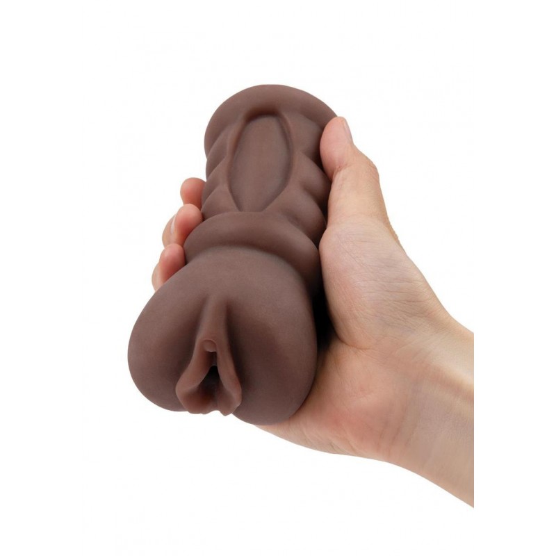 Discreet storage cup design. Comfortable grip cup with removeable sleeve for easy clean up. • Ultra-soft feel • Realistic Vagina Design • Skin safe, with ridged and kubbed inner sleeve for added sensation Textured and ribbed tunnel for added stim
