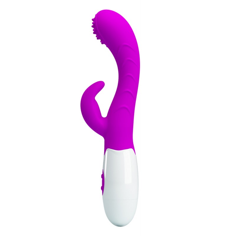 This pretty dual rabbit stimulator vibes you just where it counts! A curved canter shaft reaches deep angles to massage your inner hot zones. Outside, the clitoral stimulator's silky-soft silicone petals give your love bud the ultimate massage. Custo
