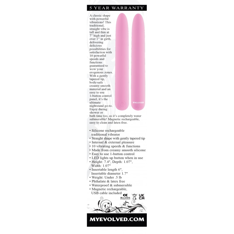 • Specially designed to reach all your erogenous zones. • Dual motor internal and clitoral stimulation • 10 functions • Waterproof • Phthalate free • RoHS compliant • Materials: Shaft – Silicone Base – ABS • Rechargeable • Insertable length –