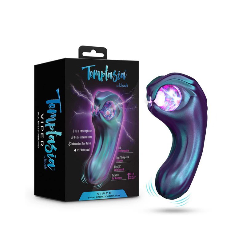 Thrust yourself towards earth-shaking pleasure with the Rumbling Rechargeable Power Stud Over & Under. The power-packed dual penetrating vibrator features two dual flexible shafts and 12 functions of vibration. Push yourself deep into ecstasy with