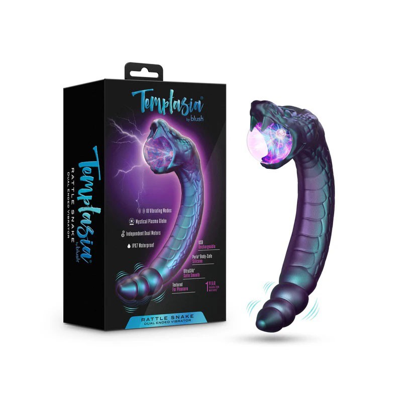 Dual motor silicone probe. USB Rechargeable. Intensely powerful dual motors. 5 functions of vibration pulsation and escalation plus independent incremental speed controls. Rechargeable Lithium Ion battery. Complete charge in 2.5 hours Unscented no