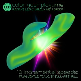 Get nightclub play-time vibes with Brat Bunny, the electric green rabbit vibrator that delivers a steady beat of pure pleasure. Two powerful motors one in the textured chubby G-spot head and one in the bunny-ear stimulator work together in unison f