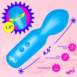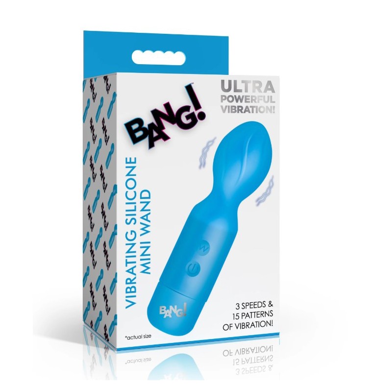 The Bang! Silicone Mini Wand is a compact rechargeable wand vibrator built from body-safe silicone and ABS plastic. The textured stimulating head is the standout feature, delivering additional tactile sensation that standard smooth tip mini wands s