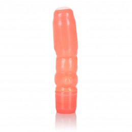 Hearts and glitter adorn this Jelly soft vibrator. State-of-the-art memory chip resumes function last used. 10 powerful functions of vibration pulsation and escalation.