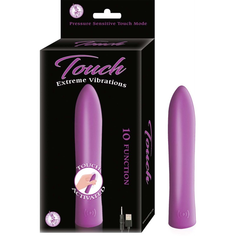 The Touch is a 10 function pressure sensitive, rechargeable, waterproof vibe. Activated via touch or manually with a button control. To activate the touch control, just press and hold the power button for 3 seconds. Hold the shaft or Hold the power