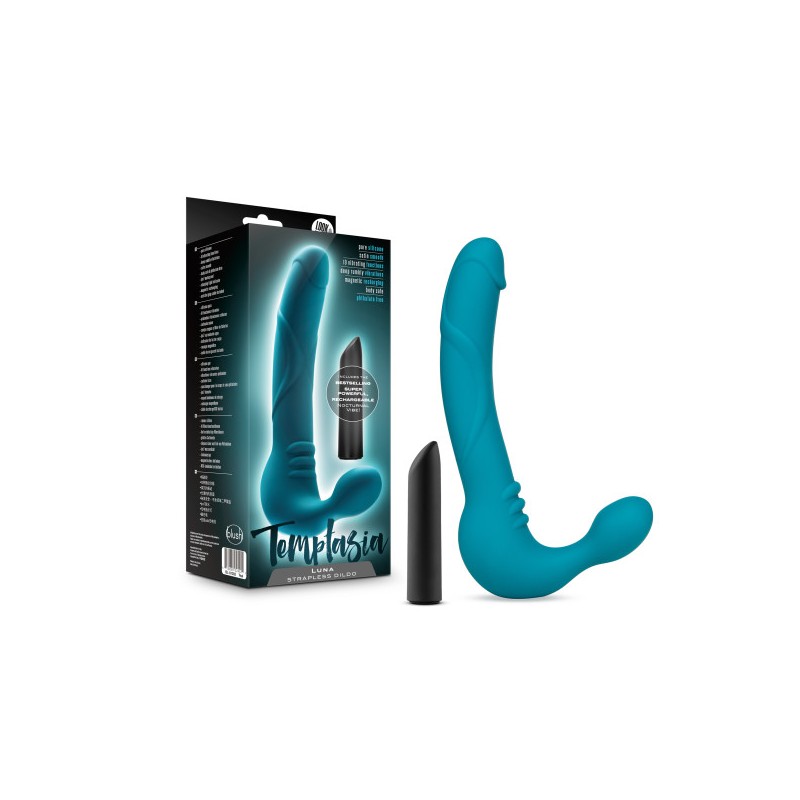The Temptasia Luna Strapless Dildo with Vibrating Bullet brings pleasure for everyone! This elegantly curved toy features two ends—a delicately rounded bulb and a gently textured shaft. Insert the powerful 10-function bullet vibe into Temptasia Luna