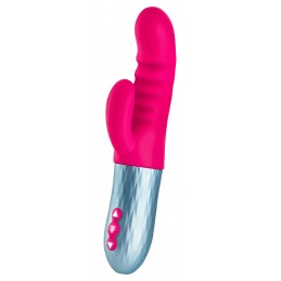 The World famous Jack Rabbit with flickering bunny ears. Sized for beginner, int ermediate, and advanced users. Features 8 intense functions of vibration, pulsat ation, and escalation; 4 speeds of independent shaft rotation, and 5 rows of non -jammin