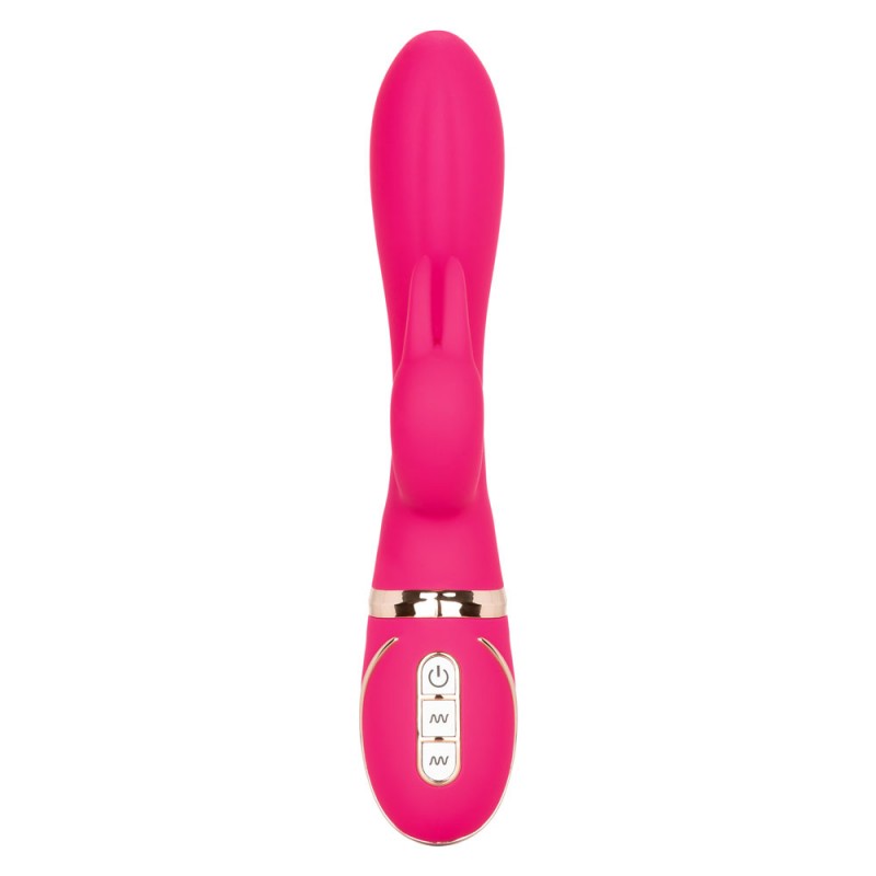 This triple threat is equipped with a vibrating, thrusting shaft, along with an external rabbit extension that both vibrates and swings against your clitoris. Each function can work independently and the memory chip resumes the last function used. Ho