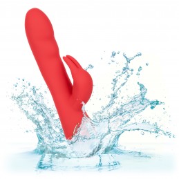 • Our most premium Jack Rabbit® ever! • Incredible heated rabbit reaches a maximum soothing temperature in just 4 minutes • Ultra-Soft™ and cushy dual Silicone • Superior vibrating action with sensual ridges plus heated flickering bunny ears • 7 powerful functions of shaft vibration, pulsation and escalation • 7 functions of independent vibration, pulsation and escalation in the rabbit • Independently controlled heating element • Easy push-button controls with security travel lock feature and LED lights • USB rechargeable – charging cord included • Complete charge in 2 hours • Runs for 50 minutes on high speed and 70 minutes on low speed • Materials: Silicone (massager, buttons) ABS with Gold Plating (décor) • Measurements: 8.5” x 1.5”/21.5 cm x 3.75 cm (overall)