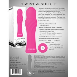 • 10 function • Dual motors • Easy push button control • Body safe silicone • Waterproof • Phthalate free • RoHS compliant • Materials: Silicone, ABS • Size: Length – 3.75″, Insertable Length – 3.5″ • Rechargeable – no batteries necessary