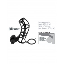 The Deluxe Silicone Power Cage is the ultimate erection enhancer. With this silicone cage wrapped snug around every inch of your manhood you'll maintain rock hard erections and prolong the fun while you stimulate your partner. The stretchy ball str