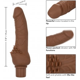 This playful vibe has an unusual feature that really gives women something to sing about! Aside from its girthy, lengthy size and widespread butterfly clitoral stimulator, this hard-working device boasts a ring that slides up and down the shaft in fi