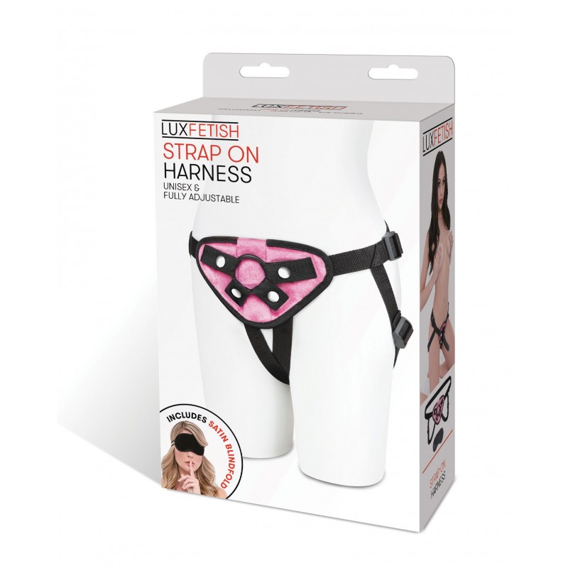 You will love the soft velvet feel of this amazing harness. Couple friendly and easy to adjust. Dong not included.