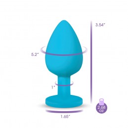 Large, Teal silicone, teardrop shaped anal plug with sparkling Clear Iridescent, colored, round acrylic gemstone. Body safe, premium silicone, anal jewelry. Easy to clean and dishwasher safe butt plugs. Available in various colors and sizes.